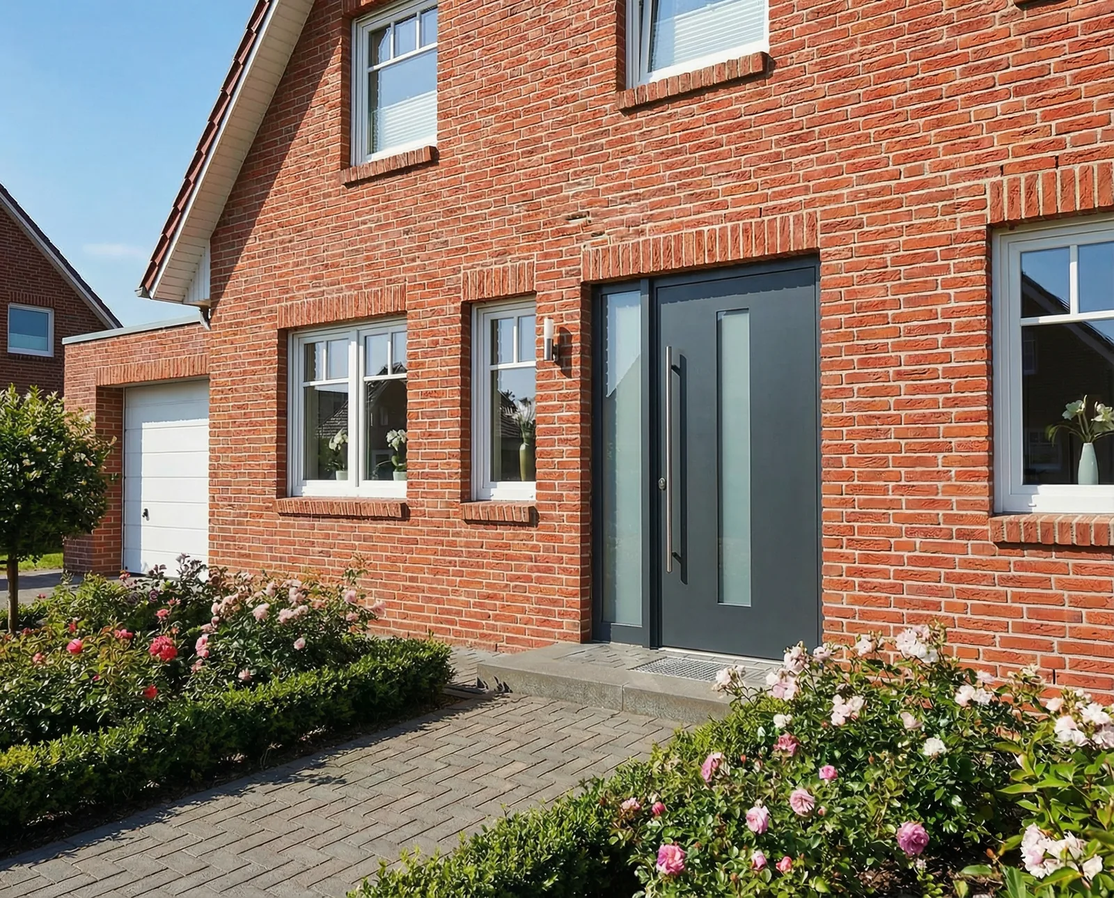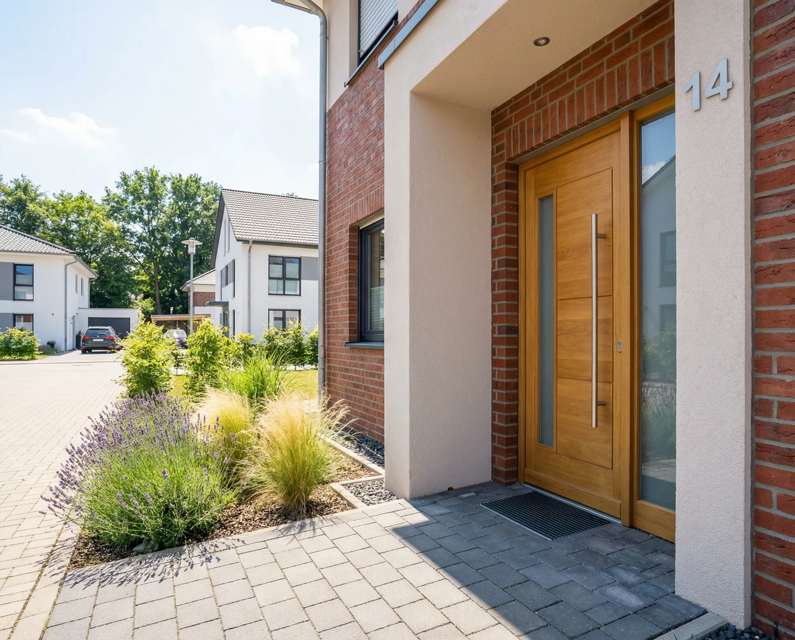 Eine neue Haustür dichtet den Hausflur endlich ab. Keine Zugluft mehr, deutlich wärmer und extrem sicher gegen Einbruch.